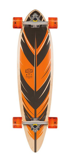 The Stella 48" Feather Pintail is designed for carving and cruising. Pressed with 7 plies of maple, it measures 48.0" long and 9.5" wide. The directional pintail shape has wheel wells and a radial concave down the platform.