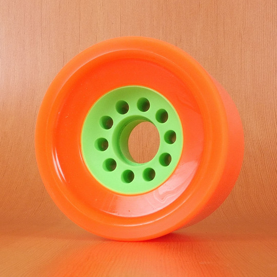 The Orangatang Caguama 85mm 80a Orange Wheels are designed for Maximum roll speed. Works best for commuting and electric boards. The tall height and firm durometer maintain a fast roll speed over smooth terrain. The square lips and smooth surface provide grip through sharp turns. The core is produced with strong, stiff, heat resistant urethane. Sold in a set of 4 wheels.