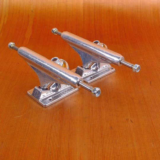 The Independent 149mm Standard Silver trucks are designed for park, pool, street, freestyle, and cruising. With 356 T6 aluminum baseplate and hanger, the axles are produced with 4140 Chromoly steel. The hanger is 149mm in length with a 216mm axle length. The board side cylinder bushing provides stability and the road side supercush bushing provides agility.