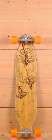 The Loaded 39" Vanguard Flex 3 is designed for carving, pumping, and cruising. Pressed with bamboo and fiberglass, it measures 38.5" long and 8.5" wide. The mid-range of the Vanguard Flex patterns, the symmetrical shape has wheel cutouts to prevent wheel bite. The platform has rocker and camber for push comfort.